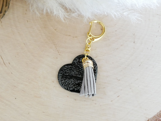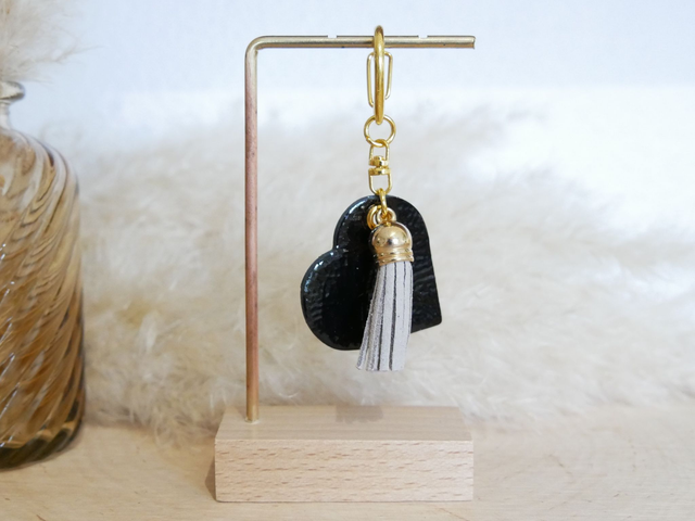 Joli porte-clés ÉLIO en forme de cœur, accompagné d'un pompon assorti.