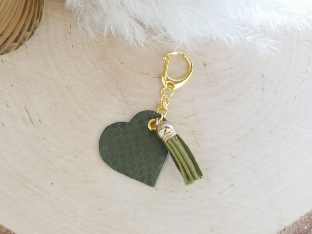 Joli porte-clés ÉLIO en forme de cœur, accompagné d'un pompon assorti.