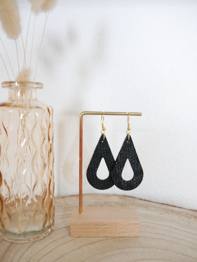 Composition : crochets en acier inoxydable, gouttes en cuir