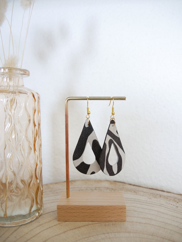 Modèle LÉSIA : une forme élégante pour ces boucles ajourées, et de jolis imprimés.